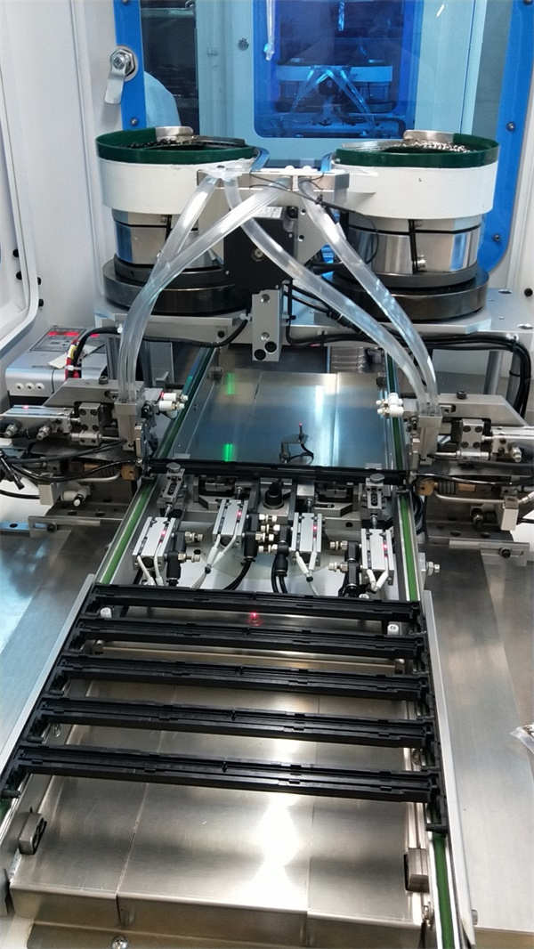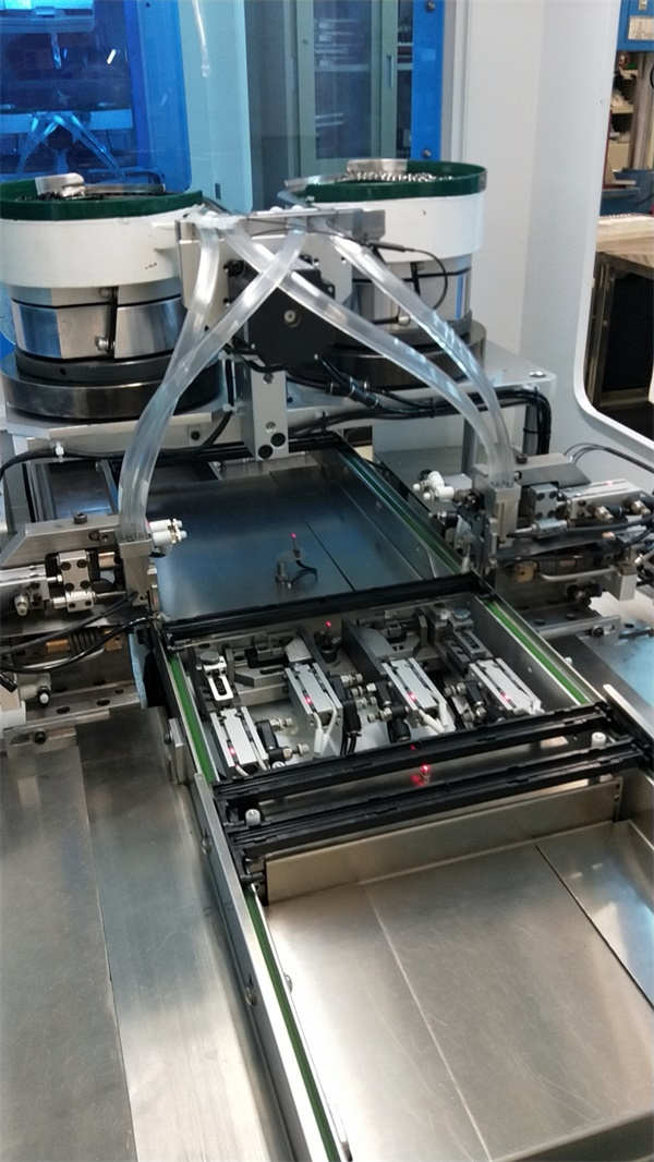 二、人工将塑胶粒,不锈钢片分别放入不同漩涡轮中,利用气缸吸气导入气管内。