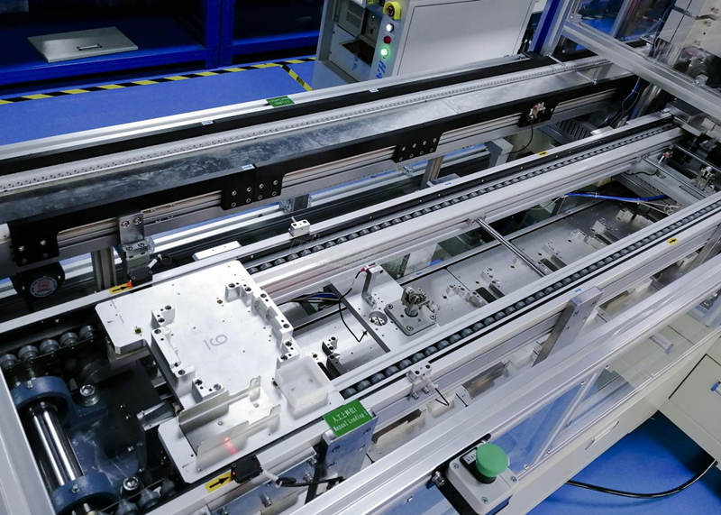 此设备是两款检测仪产品通用设备,无需更换载具、夹爪,一键更换设备生产程序,快捷方便,采用2.5倍速链传送,电机+变频器控制,速度可调,自动回流。